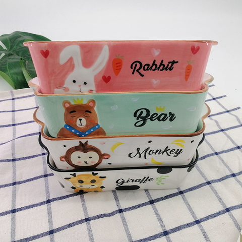 Керамическая посуда для выпечки с мультяшными животными, сковорода, тарелка для салата, духовка, кухонная посуда, милая детская столовая посуда